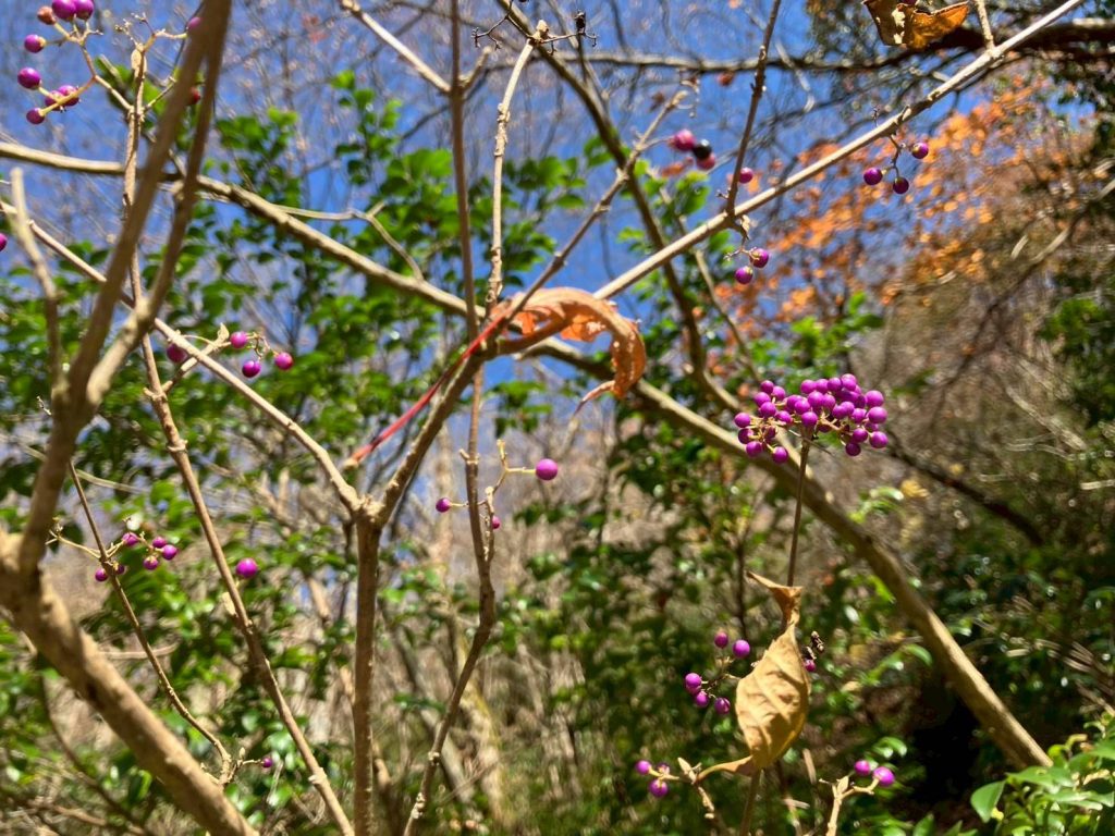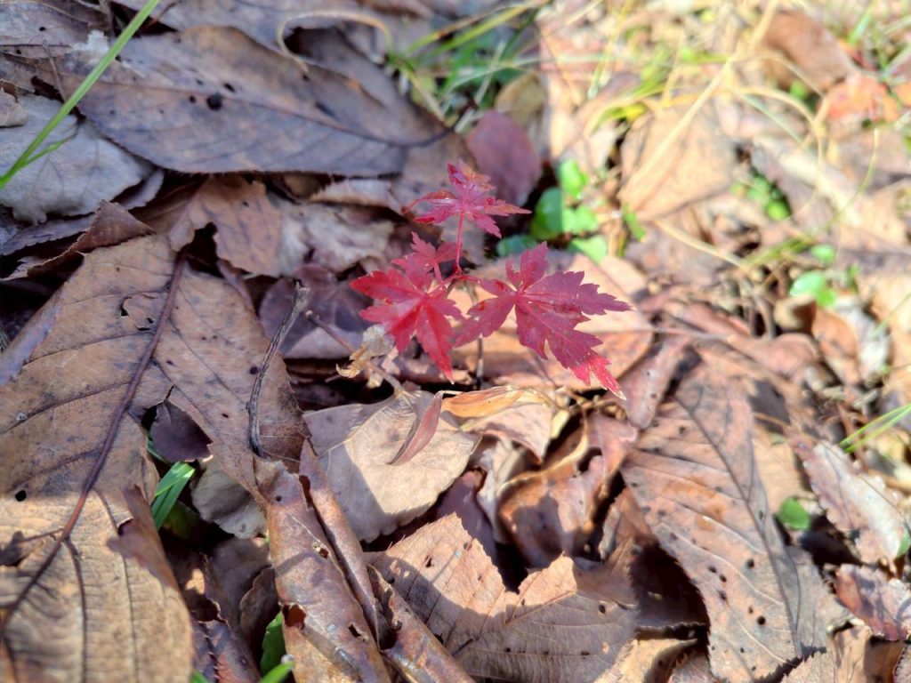 投稿者: shinrin-therapy-takashimacity 日付: 2026年1月22日 秋を感じて ヤブムラサキの実が例年になくたくさん見られました ヘビイチゴの実、自然の赤い色が際立っている 滝につながる二本の川の交差点、陽光に煌めく川の流れと陽ざしの移ろいと木立の影 モミジの赤黄 ススキの瑞々しく煌めく穂 イタドリの鈴なりの実 何んとわなしの綺麗さ 今年のもみじの幼木、はかない命 しばし自然に包まれてよし笛の音色 コケと枯葉、緑と茶色のコントラスト、なにか落ち着くコケと土の匂い 山の中で何かの目印に残された三本スギ